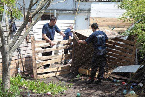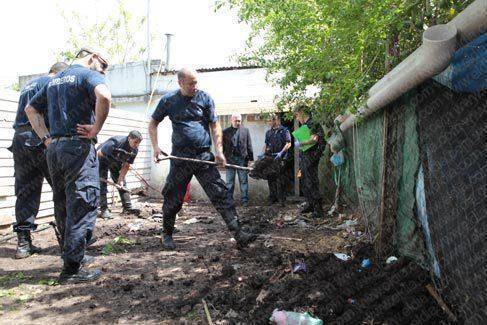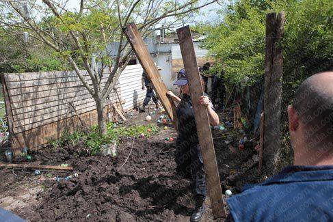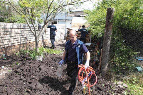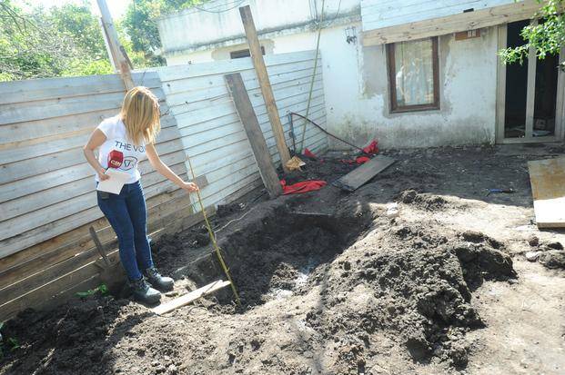 Los peritos no tardaron en descubrir que había tierra removida debajo de un pelotero de madera, en el frente del predio.
