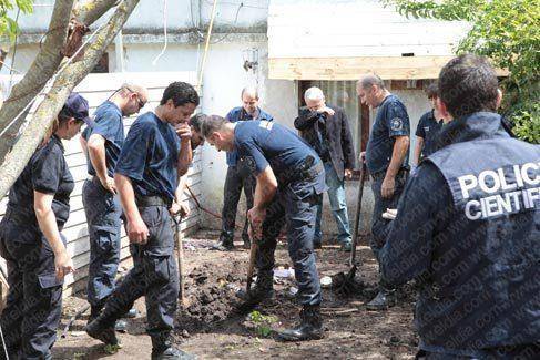 Se iniciaron las tareas de excavación y a unos 30 centímetros de profundidad encontraron el cadáver de la mujer. A partir de ese momento la tierra fue removida con pequeñas cucharas para resguardar al cuerpo, la ropa y cualquier otra evidencia, tarea que demandó varias horas.